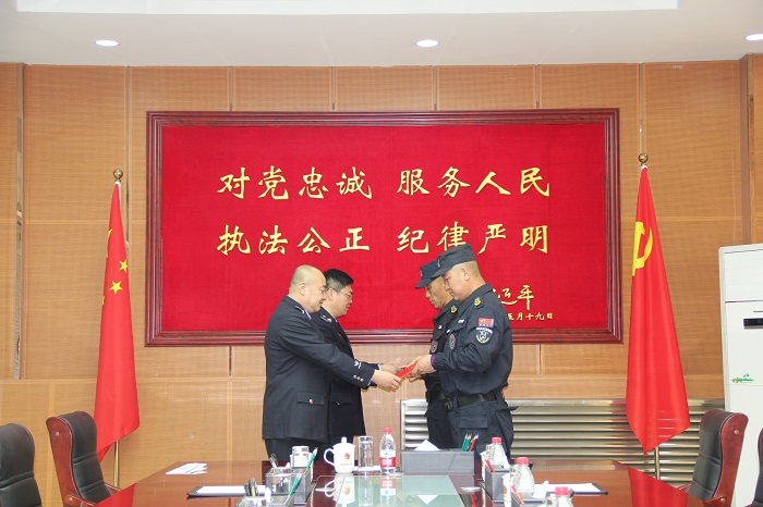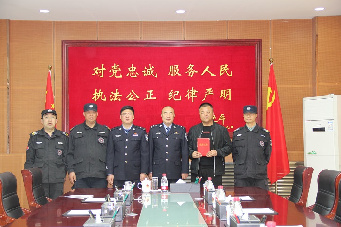 鑒于2月27日,呼和浩特市保安服務(wù)公司駐自治區(qū)公安廳交管總隊(duì)高速公路一支隊(duì)執(zhí)勤班保安員李喜生、劉利軍、汪衛(wèi)東抓獲盜竊嫌疑人移交公安機(jī)關(guān)(嫌疑人已被行政拘留); 3月18日公司駐呼市交警支隊(duì)車管所執(zhí)勤中隊(duì)保安員呼日查,賈樂(lè)恩,郭計(jì)生,董永剛合力在消防隊(duì)趕到之前處置了車輛行駛中自燃起火的突發(fā)事件,避免了車輛的重大損失。為了激勵(lì)全市保安從業(yè)單位用自己的實(shí)際行動(dòng)在全市治安防控工作中發(fā)揮越來(lái)越多的輔助作用,2019年3月19日上午,呼市公安局保安管理支隊(duì)于耀忠副支隊(duì)長(zhǎng)代表公安機(jī)關(guān)對(duì)公司以上保安員進(jìn)行了表彰獎(jiǎng)勵(lì)。
